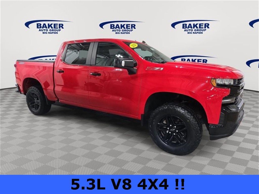 Red Hot 2020 Chevrolet Silverado 1500 LT Trail Boss 4WD 10-Speed Automatic EcoTec3 5.3L V8 LOCAL TRADE, NON SMOKER, DETAILED, NEW TIRES, APPLE CARPLAY, ANDROID AUTO, NO ACCIDENT AUTO CHECK, 10-Speed Automatic, 4WD, Black Cloth, 10-Way Power Driver Seat w/Lumbar, 12-Volt Rear Auxiliary Power Outlet, 120-Volt Bed Mounted Power Outlet, 120-Volt Instrument Panel Power Outlet, 170 Amps Alternator, 2 USB Ports, 2 USB Ports (First Row), 4-Way Manual Driver Seat Adjuster, 4.2 Diagonal Color Display Driver Info Center, 4G LTE Wi-Fi Hot Spot Capable, 6-Speaker Audio System, Advanced Trailering Package, Advanced Trailering System, All-Weather Floor Liner (LPO) (AAK), Auxiliary External Transmission Oil Cooler, Bed View Camera, Black Name Plates (LPO), Black Tailgate CHEVROLET Lettering (LPO), Bluetooth® For Phone, Chevrolet Connected Access Capable, Cloth Rear Seat w/Storage Package, Color-Keyed Carpeting Floor Covering, Compass, Convenience Package II, Convenience Package w/Buckets Seats, Dark Essentials Package (LPO), Deep-Tinted Glass, Dual Exhaust w/Polished Outlets, Dual-Zone Automatic Climate Control, Electric Rear-Window Defogger, Electrical Lock Control Steering Column, Floor Mounted Center Console, Front Bucket Seats, Front LED Fog Lamps, HD Radio, HD Rear Vision Camera, Heated Driver & Front Outboard Passenger Seats, Heated Steering Wheel, Heavy-Duty Rear Locking Differential, High Capacity Air Filter, High Gloss Black Grille, High Gloss Black Mirror Caps, Hill Descent Control, Hitch Guidance, Hitch Guidance w/Hitch View, Integrated Trailer Brake Controller, Keyless Open & Start, Lane Change Alert w/Side Blind Zone Alert, Leather Wrapped Steering Wheel, LED Cargo Area Lighting, LED Reflector Headlamps, Manual Tilt-Wheel Steering Column, Manual Tilt/Telescoping Steering Column, OnStar & Chevrolet Connected Services Capable, Performance Red Recovery Hooks, Perimeter Lighting, Power Door Locks, Power Front Windows w/Driver Express Up/Down, Power Front Windows w/Passenger Express Down, Power Rear Windows w/Express Down, Power Sliding Rear Window w/Rear Defogger, Preferred Equipment Group 2LT, Premium Bose 7-Speaker Sound System, Radio: Chevrolet Infotainment 3 Plus System, Rear 60/40 Folding Bench Seat (Folds Up), Rear Cross Traffic Alert, Rear Dual USB Charging-Only Ports, Rear Vision Camera, Remote Vehicle Starter System, Safety Package, Single-Zone Manual/Semi-Automatic Air Conditioning, SiriusXM w/360L, Steering Wheel Audio Controls, Steering Wheel Mounted Electronic Cruise Control, Suspension Package, Theft Deterrent System (Unauthorized Entry), Trailer Camera Package, Trailering Package, Ultrasonic Front & Rear Park Assist, Universal Home Remote.