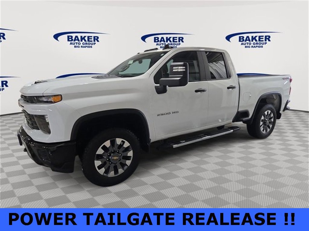 Summit White 2024 Chevrolet Silverado 2500HD Custom 4WD 10-Speed Automatic 6.6L V8 NON SMOKER, DETAILED, OIL CHANGE, APPLE CARPLAY, ANDROID AUTO, NO ACCIDENT AUTO CHECK, 10-Speed Automatic, 4WD, Black Cloth, 10-Way Power Driver Seat Adjuster w/Lumbar, 120-Volt Bed Mounted Power Outlet, 120-Volt Interior Power Outlet, 170 Amp Alternator, 2-Speed Electronic Shift Transfer Case, 3.5 Diagonal Monochromatic Display DIC, Black Mirror Caps, Bluetooth® For Phone, Chevrolet Connected Access Capable, Color-Keyed Carpeting Floor Covering, Compass, Custom Convenience Package, Deep-Tinted Glass, Dual Rear USB Ports (Charge Only), Electric Rear-Window Defogger, Electronic Cruise Control w/Set & Resume Speed, EZ Lift Power Lock & Release Tailgate, Front Rubberized Vinyl Floor Mats, Gooseneck/5th Wheel Prep Package, HD Rear Vision Camera, Heated Vertical Trailering Mirrors, Heavy Duty Front Spring/Camper Package, Integrated Trailer Brake Controller, LED Cargo Area Lighting, Locking Tailgate, Manual Tailgate Function w/No EZ Lift, Manual Tilt-Wheel Steering Column, OnStar & Chevrolet Connected Services Capable, Power Door Locks, Power Front Windows w/Driver Express Up/Down, Power Front Windows w/Passenger Express Down, Power Rear Windows w/Express Down, Preferred Equipment Group 1CX, Push Button Start, Rear 60/40 Folding Bench Seat (Folds Up), Rear Rubberized Vinyl Floor Mats, Remote Keyless Entry, Remote Vehicle Starter System, SiriusXM w/360L, Standard Tailgate, Suspension Package, Unauthorized Entry Theft-Deterrent System, Wi-Fi Hotspot Capable, Wireless Phone Projection.Odometer is 7559 miles below market average!CALL 231-796-7681 TO SCHEDULE YOUR TEST DRIVE TODAY!