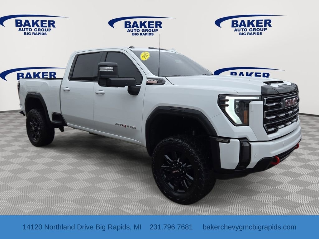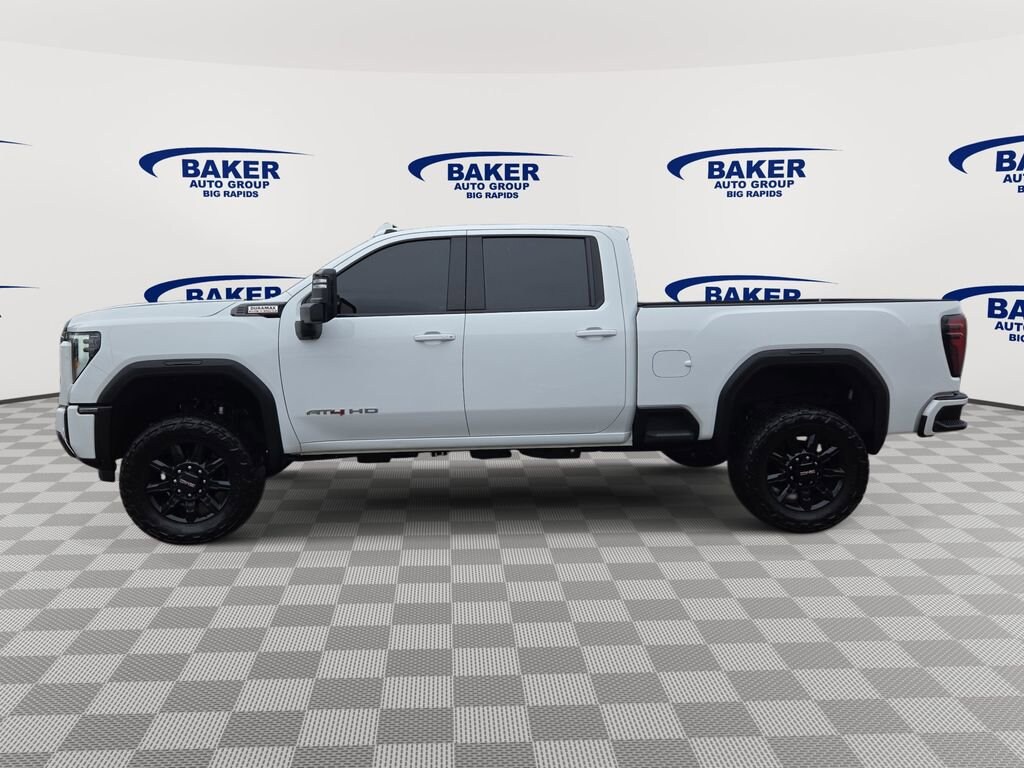 Summit White 2024 GMC Sierra 2500HD AT4 4WD 10-Speed Automatic Duramax 6.6L V8 Turbodiesel LOCAL TRADE, LIFT KIT, 1 OWNER, NO ACCIDENT AUTO CHECK, DIESEL ENGINE, Sierra 2500HD AAT4, 4D Crew Cab, Duramax 6.6L V8 Turbodiesel, 10-Speed Automatic, 4WD, Summit White, Jet Black With Kalahari Accents Leather, 10-Way Power Driver Seat Adjuster w/Lumbar, 10-Way Power Passenger Seat Adjuster w/Lumbar, 2 Charge/Data USB Ports Inside Center Console, 2 USB Ports, Apple CarPlay/Android Auto, Auto High-beam Headlights, Automatic Emergency Braking, Bed View Camera w/2 Trailer Camera Provisions, Bose Premium 7-Speaker Sound System, Engine Block Heater, Exhaust Brake, Forward Collision Alert, Front fog lights, GMC Connected Access Capable, Gooseneck/5th Wheel Prep Package, HD Surround Vision, Heated 2nd Row Outboard Seats, Heated door mirrors, Heated front seats, Heated rear seats, Heated steering wheel, Heavy-Duty 80 Amp Battery, Hill Descent Control, Hitch Guidance w/Hitch View, In-Vehicle Trailering System App, Integrated Trailer Brake Controller, IntelliBeam Automatic High Beam On/Off, Lane Departure Warning System, LED Cargo Area Lighting, Power passenger seat, Power Sliding Rear Window w/Defogger, Push Button Start, Rear Cross Traffic Alert, Spray-On Bedliner w/AT4 Logo, Trailer Cam Provisions & Trailer Viewing Software, Trailer Side Blind Zone Alert, Turn signal indicator mirrors, Universal Home Remote, Ventilated Driver & Front Passenger Seats, Wireless Phone Projection.