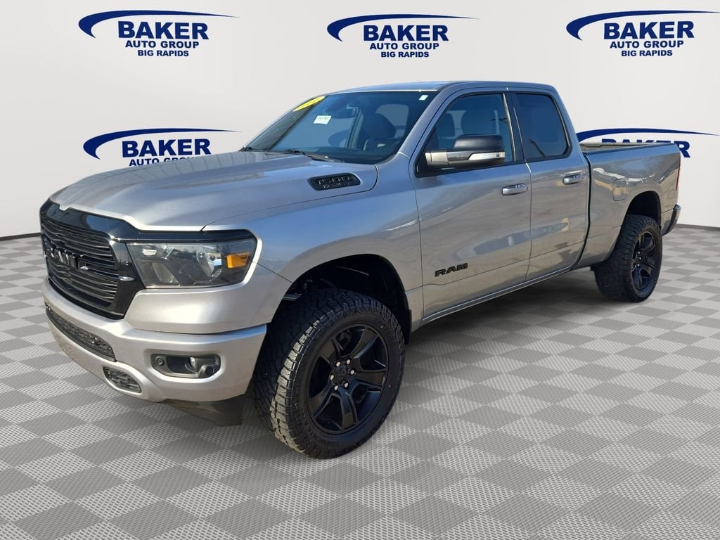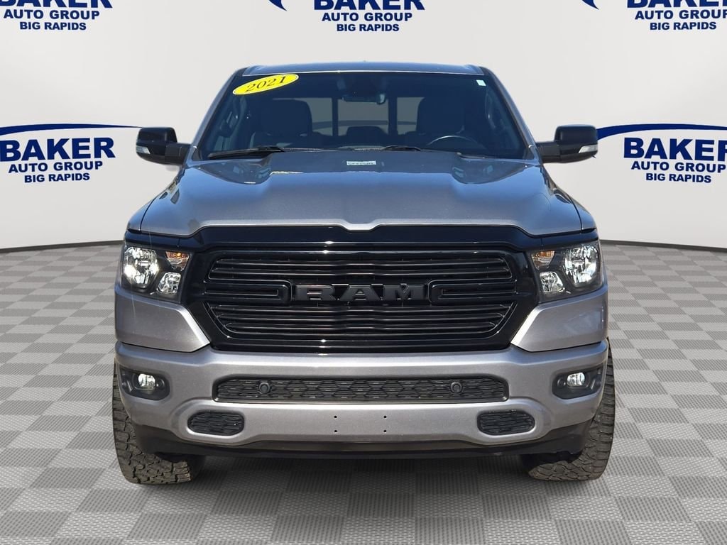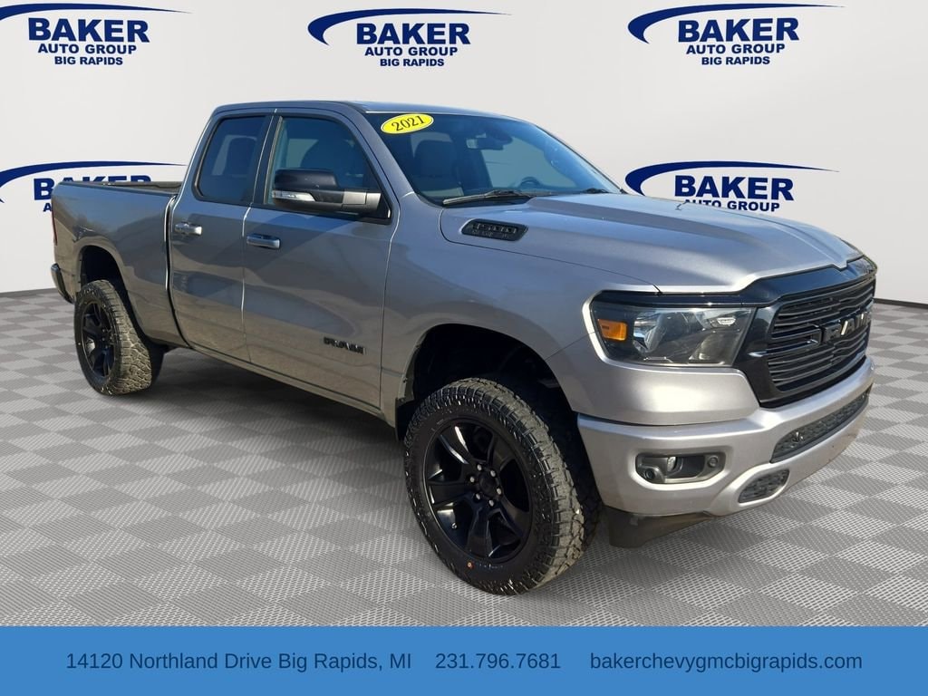 Billet Silver Metallic Clearcoat 2021 Ram 1500 Big Horn/Lone Star 4WD 8-Speed Automatic HEMI 5.7L V8 Multi Displacement VVT 1 OWNER, NO ACCIDENT AUTO CHECK, 1500 Big Horn/Lone Star, 4D Quad Cab, HEMI 5.7L V8 Multi Displacement VVT, 8-Speed Automatic, 4WD, Billet Silver Metallic Clearcoat, Auto-Dimming Rear-View Mirror, Black Premium Power Mirrors, Class IV Receiver Hitch, Dual Exhaust w/Black Tips, Front fog lights, Fully automatic headlights, Heated door mirrors, Heated Front Seats, Heated Steering Wheel, Illuminated entry, Integrated Voice Command w/Bluetooth, ParkView Rear Back-Up Camera, Power 4-Way Driver Lumbar Adjust, Power Adjustable Pedals, Radio: Uconnect 4 w/8.4 Display, Remote keyless entry, Steering wheel mounted audio controls, Trailer Brake Control, Universal Garage Door Opener.
