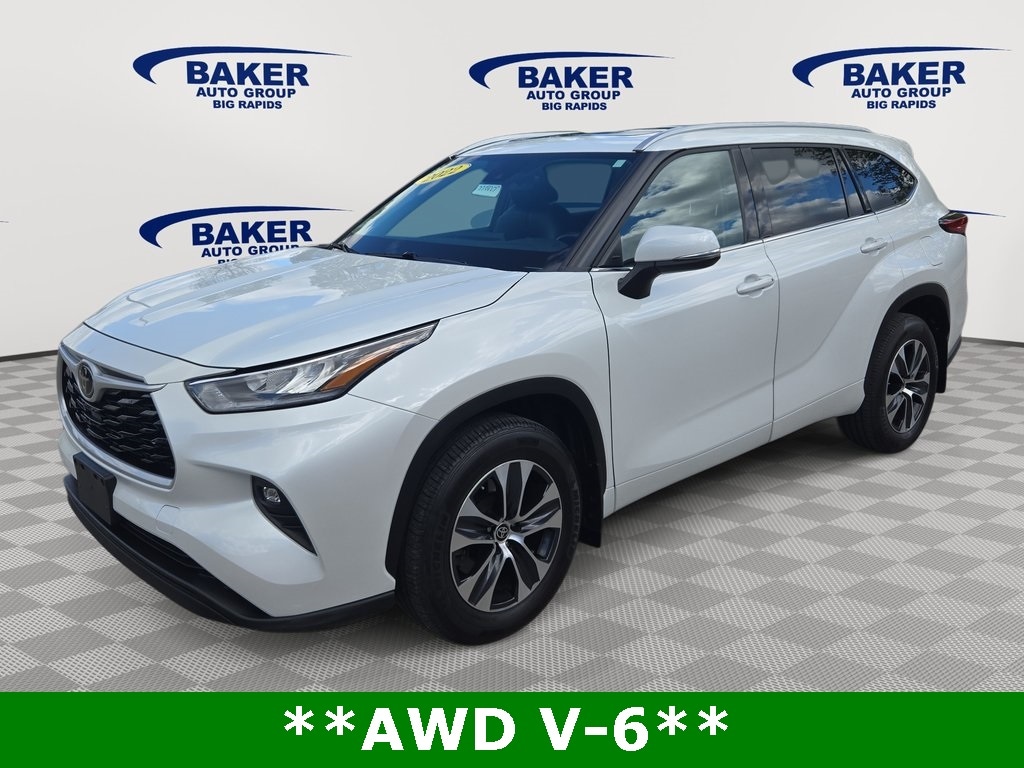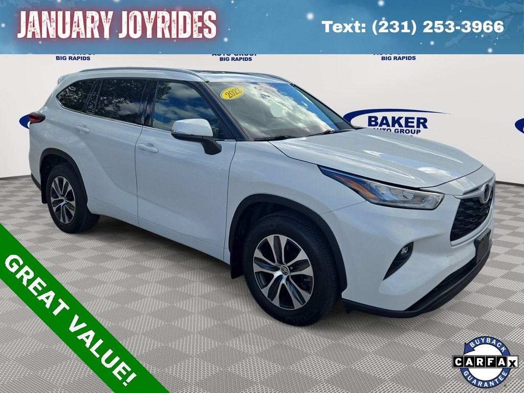 2022 Toyota Highlander XLE AWD Wind Chill Pearl with SofTex Interior Powered by a strong and reliable 3.5L V6 engine paired with an 8-speed automatic transmission, this all-wheel-drive SUV delivers confident performance with excellent efficiency at 20 city / 27 highway MPG. Designed for families and all-season driving, it features Toyota Safety Sense with Pre-Collision System, Lane Tracing Assist, Blind Spot Monitor, Rear Cross-Traffic Alert, Driver Monitoring Alert, Evasion Assist, adaptive Dynamic Radar Cruise Control, backup camera with washer, and full 3-row airbag protection. The upscale interior offers SofTex seating, power driver seat, leather-wrapped steering wheel, HomeLink, dual-zone climate control, sliding/tilting sunroof, versatile cargo space, and seating for up to 7. Exterior highlights include 18-inch machined alloy wheels, LED headlights with auto high beams, fog lamps, roof rails, and premium styling accents. A dependable, comfortable, and tech-forward AWD SUV ideal for families, road trips, and year-round Michigan driving. Schedule your test drive today.