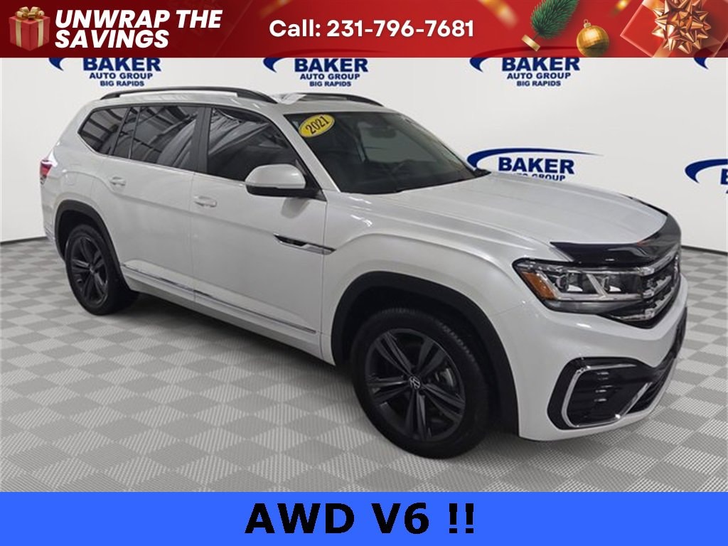 White Pearl 2021 Volkswagen Atlas 3.6L V6 SE w/Technology R-Line AWD 8-Speed Automatic with Tiptronic 3.6L VR6 LOCAL TRADE, NON SMOKER, DETAILED, OIL CHANGE, APPLE CARPLAY, ANDROID AUTO, NO ACCIDENT AUTO CHECK, ALL-WHEEL-DRIVE, 3rd row seats: split-bench, Front dual zone A/C, Heated Comfort Front Bucket Seats, Heated front seats, Panoramic Sunroof, Panoramic Sunroof Package, Perforated V-Tex Leatherette Seating Surfaces, Power driver seat, Power Liftgate, Split folding rear seat, Sport steering wheel, Towing Package.Recent Arrival!CALL 231-796-7681 TO SCHEDULE YOUR TEST DRIVE TODAY!